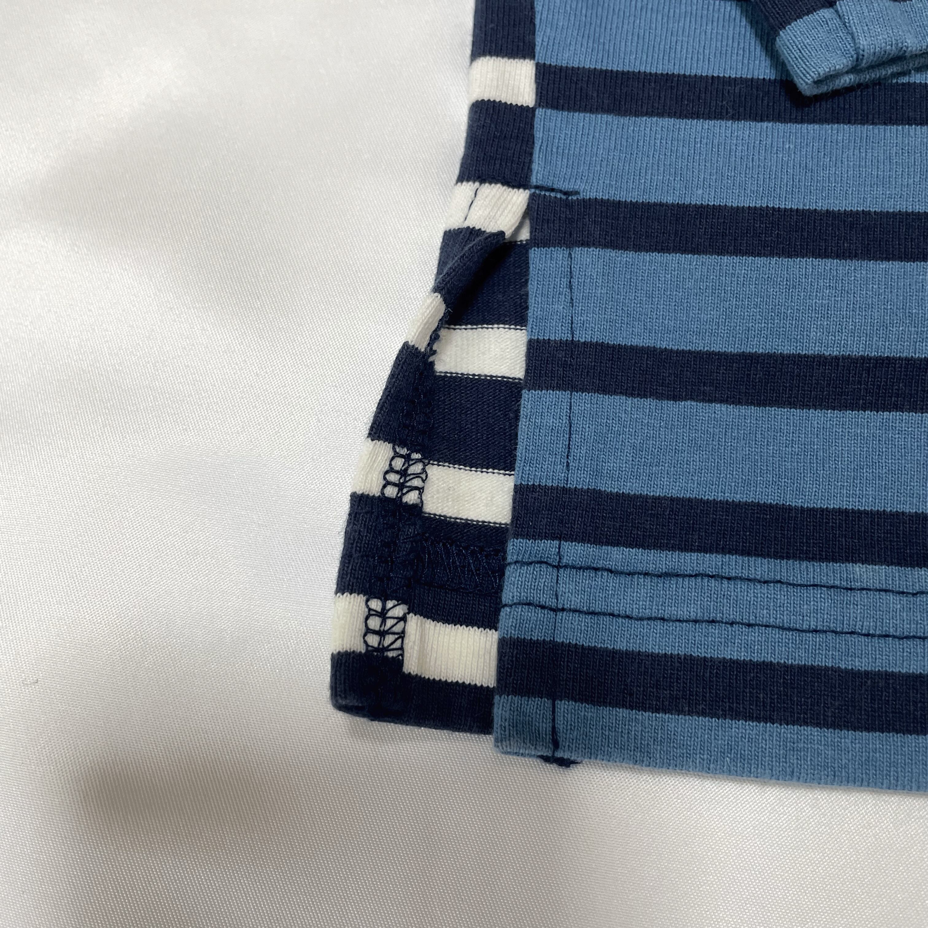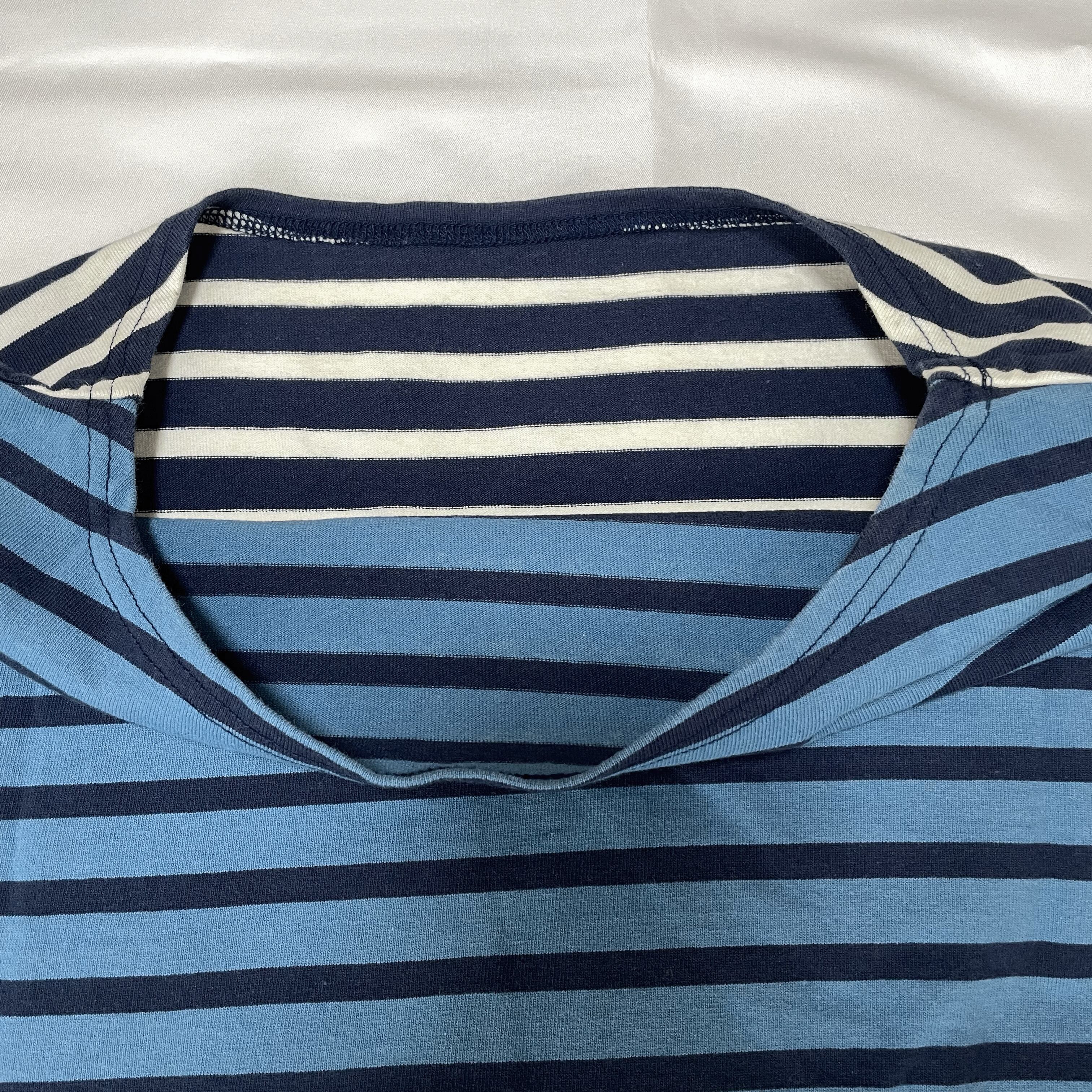 セレクトショップBEAMSオリジナルのバスクシャツです。前後でリバーシブルな着こなしができるマルチボーダー柄です。
